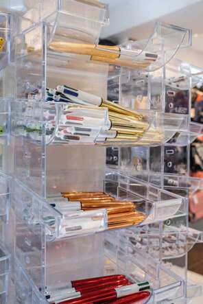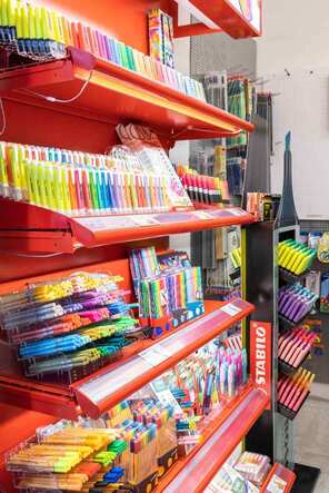Achteraan onze winkel kan u 120m² school- en kantoormateriaal vinden. We hebben bovendien een ruim assortiment aan rugzakken, pennenzakken en fluo.